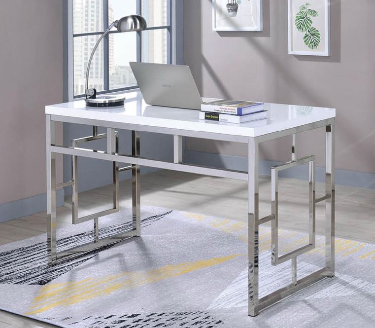 The Alize desk features a stunning design in chrome that encompass modern, artsy styling. The clean, straight lines flow in the design to form a sturdy, but visually appealing aesthetic that feels right at home, no matter the setting. The desk is completed with the use of faux wood Silver shield 3D Laminate top, that resists heat, scratches and moisture. The end panels on the desk feature ends that seamlessly blend with the design elements of your home giving a feel of understated opulence.