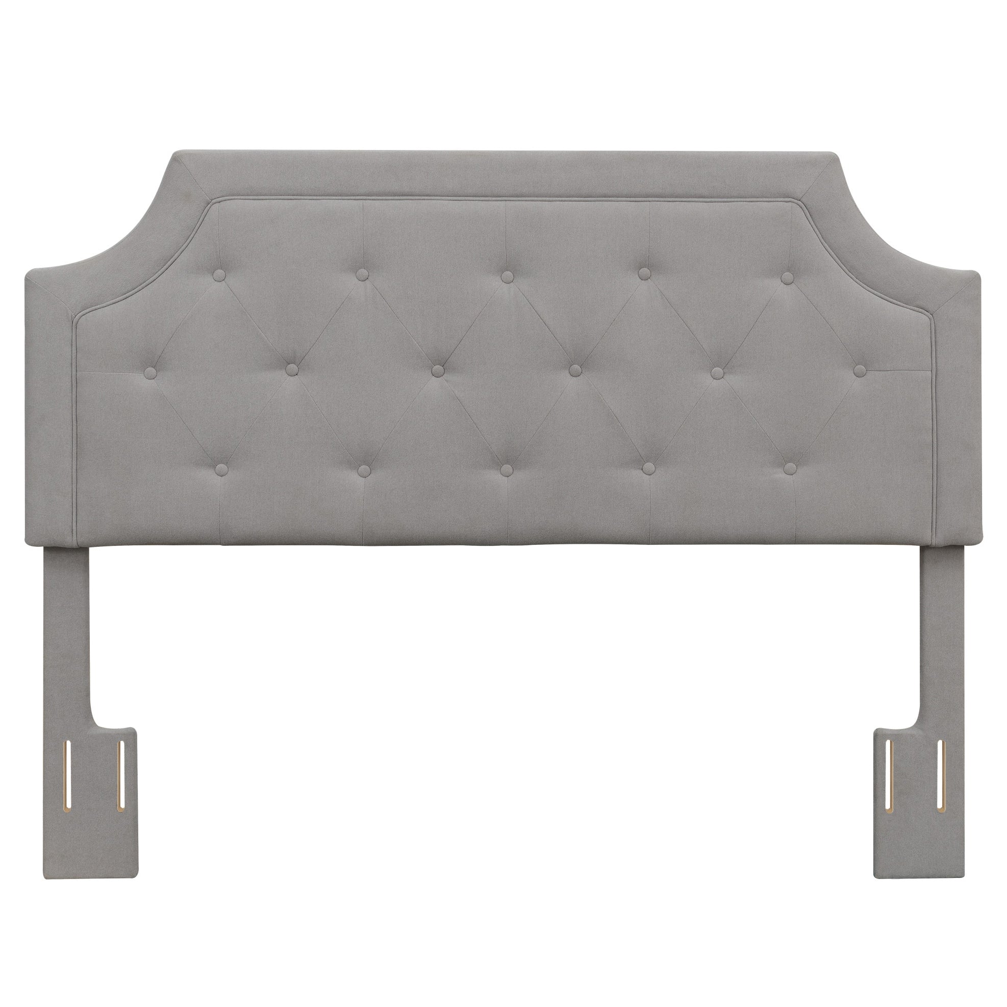 Rejuvenate your bedroom with the sophisticated look of The Alta upholstered headboard; the modern look makes the Alta headboard the focal point of your room and show off your own personal sense of style. With scooped corners and elegant diamond tufting, it will become the centerpiece of any contemporary or transitional décor. The soft, Grey microfiber fabric and upholstered, solid wood posts provide a rich look. It’s perfect for reading in bed or a relaxing chat on the phone, and built to fit a full or queen bedframe. The height is adjustable to fit any mattress.