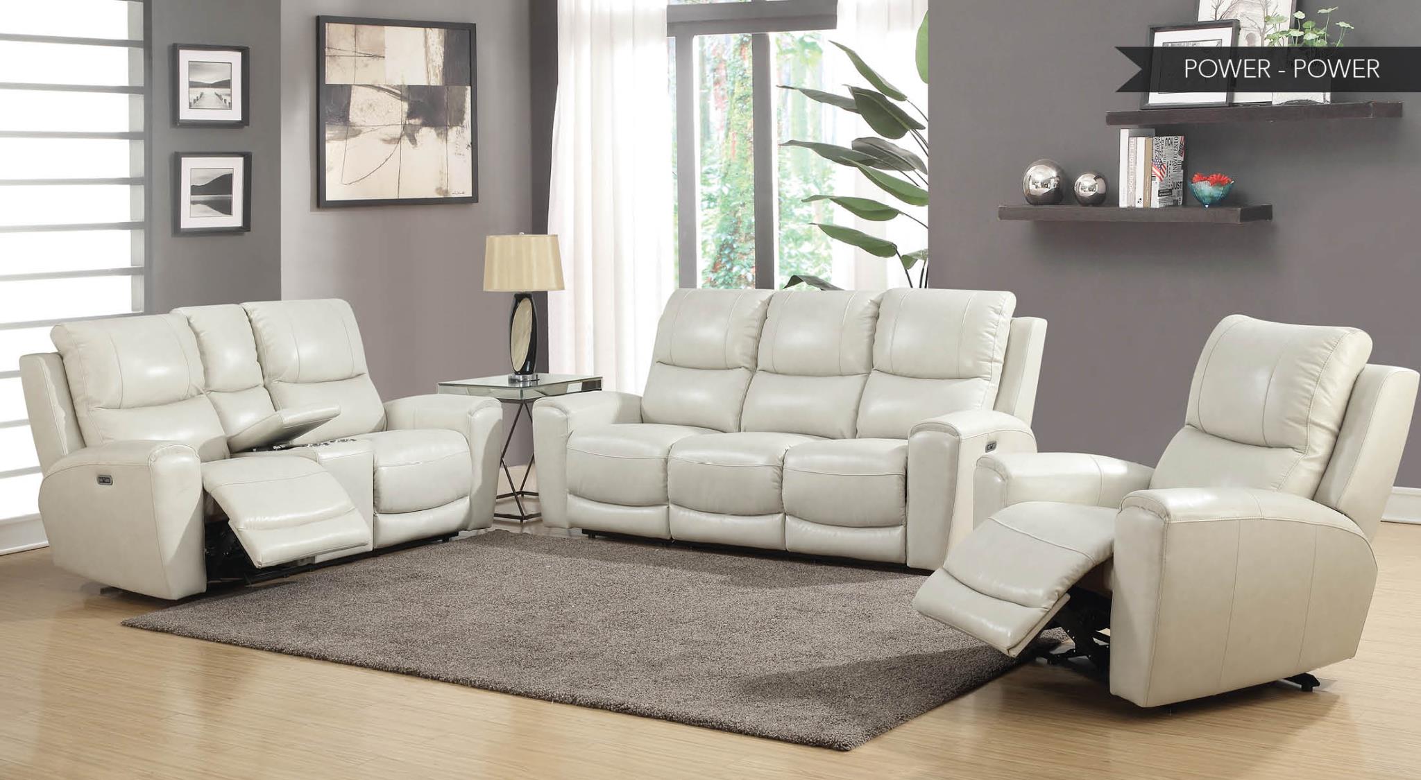 LAUREL IVORY DUAL-POWER LEATHER RECLINING SOFA, CONSOLE LOVESEAT & RECLINER